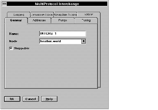 When the administrator opened the Interchange property sheet to define the characteristics of the Interchange on Heather, the name of the Interchange had already been created by the Network Manager. On the general page, the administrator did the following: