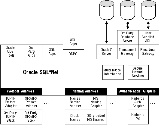 All of the advanced Oracle7 capabilities, such as basic replication, the advanced replication option, stored procedure calls, and automatic transaction recovery mechanisms, can operate transparently across any number of protocol boundaries.