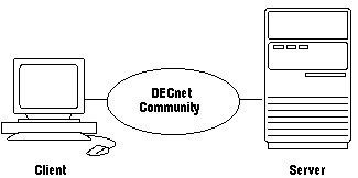 Note that using the Interchange imposes no new restrictions on a SQL*Net connection. If used in a client-server connection, clients have a standard peer-to-peer connection between the client and server although they are in different communities.