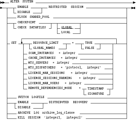 | ALTER SYSTEM | To alter the Oracle7 instance by performing a specialized function. |