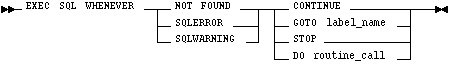 EXEC SQL WHENEVER NOT FOUND; ... EXEC SQL WHENEVER SQLERROR GOTO sqlerror: ... sql_error: EXEC SQL WHENEVER SQLERROR CONTINUE; EXEC SQL ROLLBACK RELEASE;