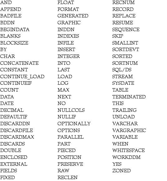 Consult the Oracle7 Server SQL Reference for a list of words that are reserved by SQL. Tables or columns that have these names must also be specified in double quotation marks.