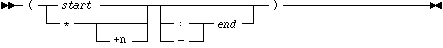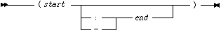 The position must be surrounded by parentheses. The starting location may be specified as a column number, as * (next column), or *+n (next column plus an offset). The start and end locations may be separated with either a colon (:) or a dash (-).
