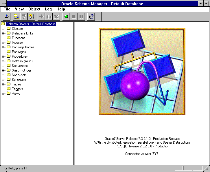 After Schema Manager successfully connects to a database, the schema navigator displays on the left side of Schema Manager window. The navigator consists of a series of schema object containers, one for each type schema object contained in the main Schema Objects folder. The name of the connected database is displayed next to the Schema Objects folder.