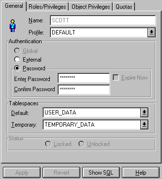 Most database tool and utility applications include pull-down menus that contain the commands available for specific groups. The menu titles usually match the names of the groups. For example, the Security application provides the User, Profile, and Role menus. Context-Sensitive Menus