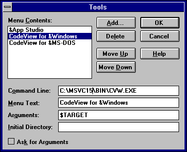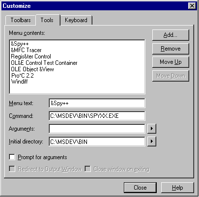 - From within Visual C++, select Tools from the Options menu. The Tools