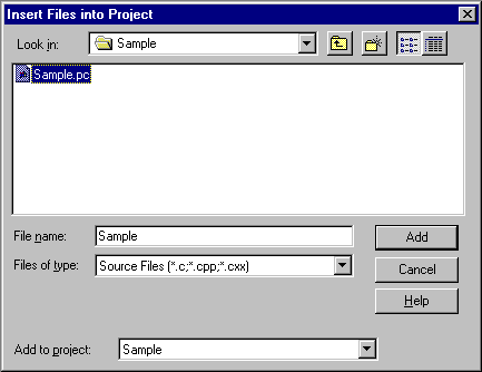 - Create a New project sample and add sample.pc into the project using