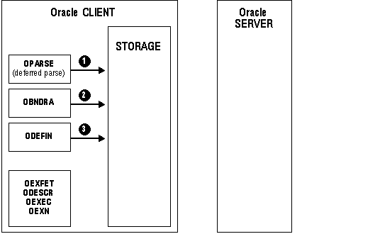 In this example, the OPARSE, OBNDRA and ODEFIN calls are deferred until an execute or describe call is performed.