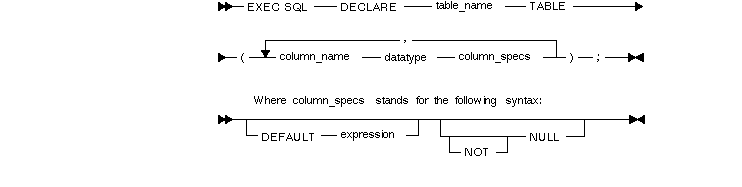 EXEC SQL DECLARE PARTS TABLE