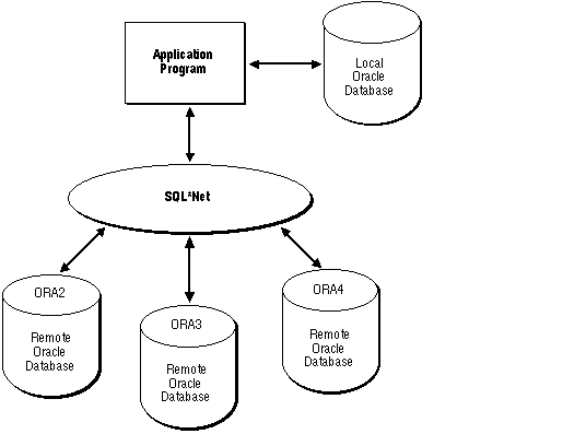 Figure 3 - 5 shows one way that components of the DTP model can interact to provide efficient access to data in an Oracle database. The DTP model specifies the XA interface between resource managers and the transaction manager. Oracle supplies an XA-compliant library, which you must link to your X/Open application. Also, you must specify the native interface between your application program and the resource managers.
