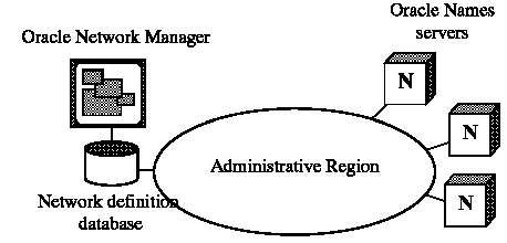 Each administrative region has a single installation of the Oracle Network Manager through which Oracle Names and other Oracle network products can be configured. The tool enables the administrator to configure and administer all database listeners, global database links, clients, Interchanges, and Names Servers in that administrative region.