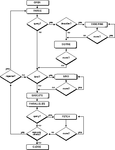 The following sections describe each phase of SQL statement processing for each type of SQL statement. As you read this information, remember that for many Oracle tools, several of the phases are performed automatically. Most users need not be concerned with or aware of this level of detail. However, you might find this information useful when writing Oracle applications.