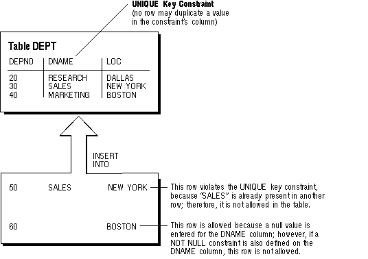 . UNIQUE key and PRIMARY KEY constraints are usually managed by the database administrator; see the Oracle7 Server Administrator's Guide for more information.