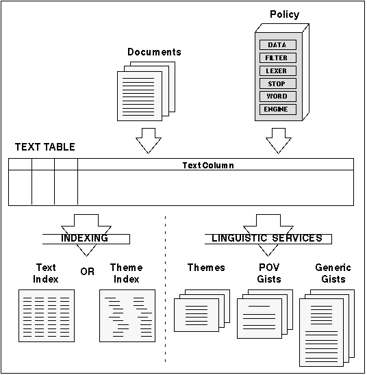 The collection of text to be managed must be stored in an environment that is accessible to Oracle and ConText Option either as columns in an Oracle database or as pointers to system files outside the database.