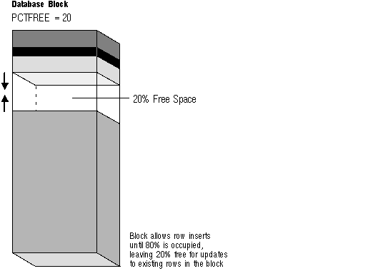 This indicates that 20% of each data block used for this table's data segment will be kept free and available for possible updates to the existing rows already within each block. Figure 10 - 1 illustrates PCTFREE.