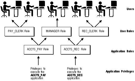 The DBA can create a role with a password to prevent unauthorized use of the privileges granted to the role. Typically, an application is designed so that when it starts, it enables the proper role. As a result, an application user does not need to know the password for an application's role.