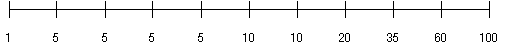 Consider a column C with values between 1 and 100 and a histogram with 10 buckets. If the data in C is uniformly distributed, this histogram would look like this, where the numbers are the endpoint values.
