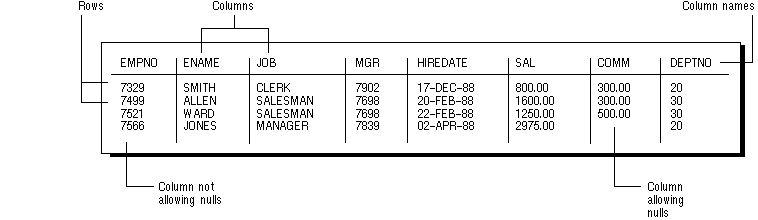Note: See Chapter 6, "Datatypes", for a discussion of the Oracle datatypes.