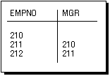 - The self-referential constraint makes the entries in the MGR column dependent on the values of the EMPNO column. For simplicity, the rest of this discussion only addresses the EMPNO and MGR columns of the EMP table.