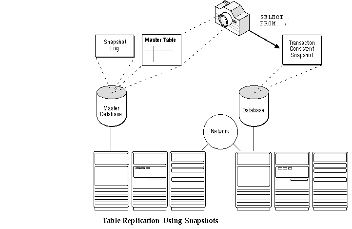 Each replica (or copy) of the master table is called a snapshot because the information captured at a moment in time can be periodically refreshed to reflect a more recent transaction-consistent state of the master table.