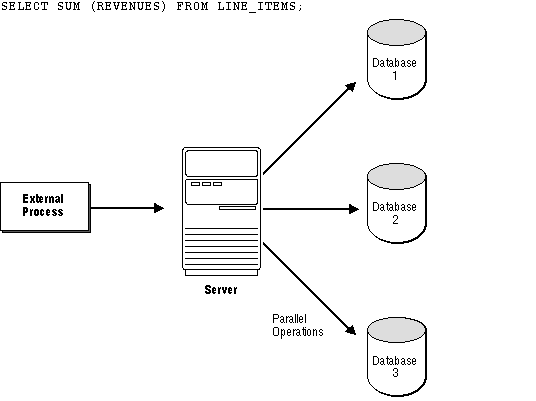 External parallelism was designed to support parallel "shared-nothing" hardware architectures, in which each CPU has dedicated memory and disks. To execute queries rapidly, external parallelism separates a database into several sections, each of which is associated with a specific processor and memory.