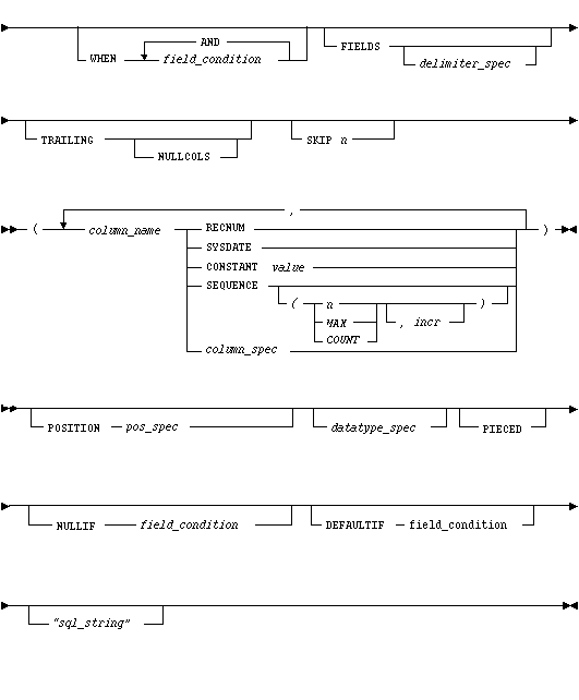 , "Operators, Functions, Expressions, Conditions", in the Oracle7 Server SQL Reference. The SQL string must be enclosed in double quotation marks. It appears after any other specifications for a given column. It is evaluated after any NULLIF or DEFAULTIF clauses, but before a DATE mask. It may not be used on RECNUM, SEQUENCE, CONSTANT, or SYSDATE fields. If the RDBMS does not recognize the string, the load terminates in error. If the string is recognized, but causes a database error, the row that caused the error is rejected.