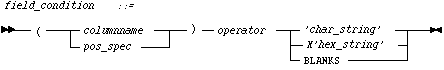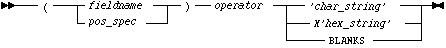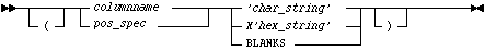 The char_string and hex_string can be enclosed in either single quotation marks or double quotation marks. The hex_string is a string of hexadecimal digits, where each pair of digits corresponds to one byte in the field. The BLANKS keyword allows you to test a field to see if it consists entirely of blanks. It is necessary when you are loading delimited data and you cannot predict the length of the field, or when using a multi-byte character set that has multiple blanks.