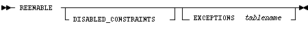 When the load completes, the integrity constraints will be re-enabled automatically if the REENABLE clause is specified. The syntax for this clause is as follows: